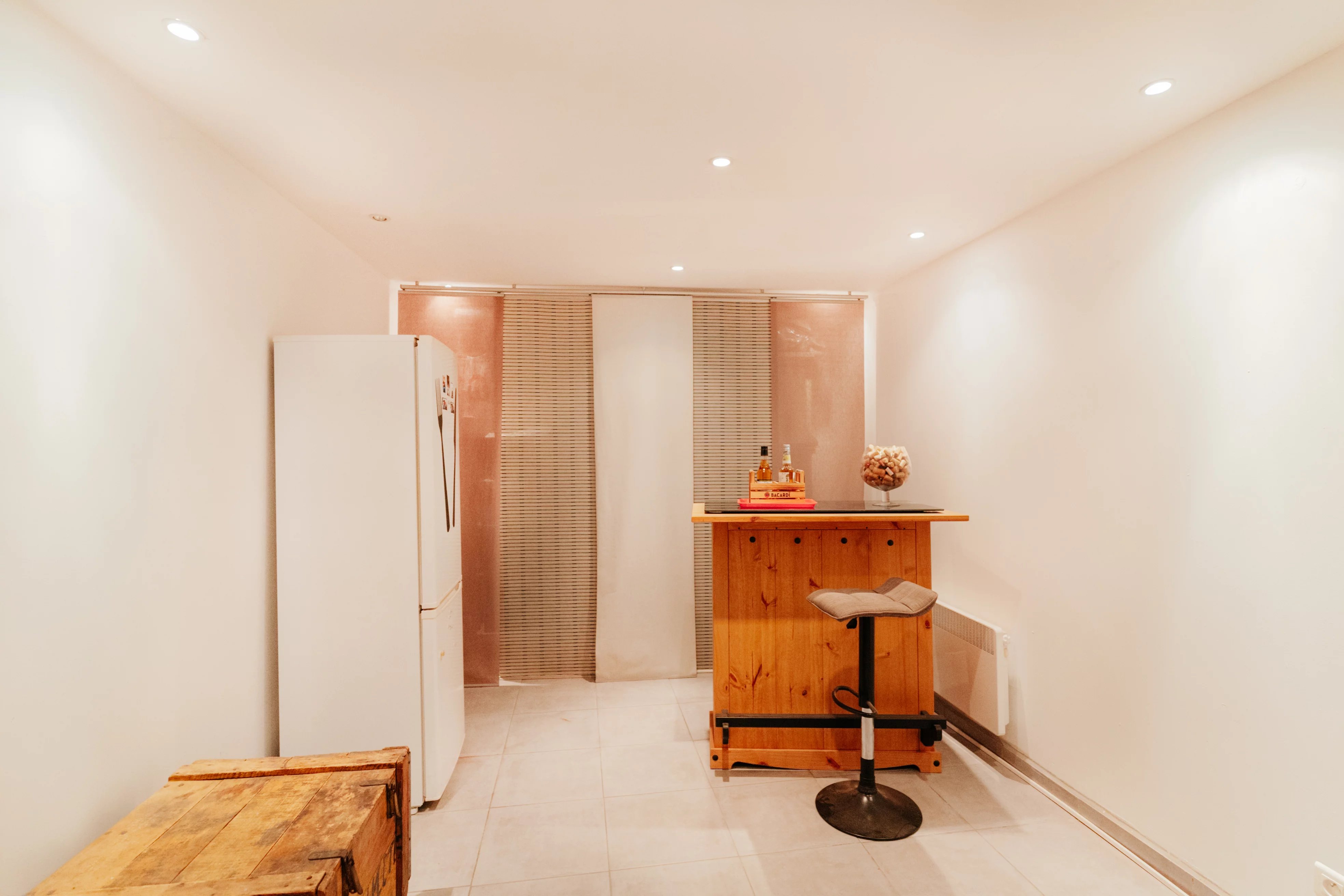 Le premier étage se compose d'une grande pièce de vie ainsi que d'une cuisine équipée qui donne un accès direct sur un balcon.